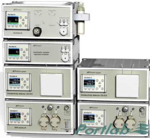 Двухканальный  ионный  хроматограф  Джетхром с системой  автоматической промывки жидкостного тракта и анионным  подавителем фоновой электропроводности предназначен для одновременного  анализа следовых количеств различных неорганических и органических ионов (включая литий,  натрий, аммоний, калий, магний, кальций, стронций,  фториды, хлориды, нитраты, нитриты, сульфаты, фосфаты,  анионы карбоновых кислот и др.) в особо чистых водных средах, в том числе в технологических водах предприятий тепловой и атомной энергетики. микроэлектронной промышленности и неорганического синтеза.