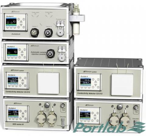Двухканальный ионный хроматограф Джетхром c двумя независимыми жидкостными трактами: концентрирования и разделения, с ситемой их автоматической промывки и анионным подавителем фоновой электропроводности предназначен для одновременного анализа следовых количеств различных неорганических и органических ионов (включая литий, натрий, аммоний, калий, магний, кальций, стронций, фториды, хлориды, нитраты, нитриты, сульфаты, фосфаты, анионы карбоновых кислот и др.) в особо чистых водных средах, в том числе в технологических водах предприятий тепловой и атомной энергетики. микроэлектронной промышленности и неорганического синтеза.