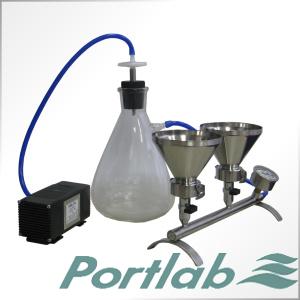 для фильтрования воды под вакуумом. Состоит из коллектора с основаниями, на верхнем торце которых находятся титановые фритты для размещения дисковых фильтров. Воронки крепятся к основаниям при помощи зажимов. На коллекторе установлены краны, которые позволяют независимо отключать и подключать к источнику вакуума каждую воронку. Воронки отполированы и не имеют швов, благодаря чему исключается вероятность перекрёстной обсеменённости фильтруемой пробы. На внутренней стороне воронок нанесены риски, позволяющие контролировать залитый объём по 100 мл. Крышка из нержавеющей стали поставляется по запросу.